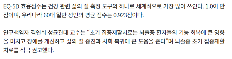 2021 뇌졸중 초기재활치료가 5년간 일상생활 좌우 메디칼트리뷴 2021.10.29